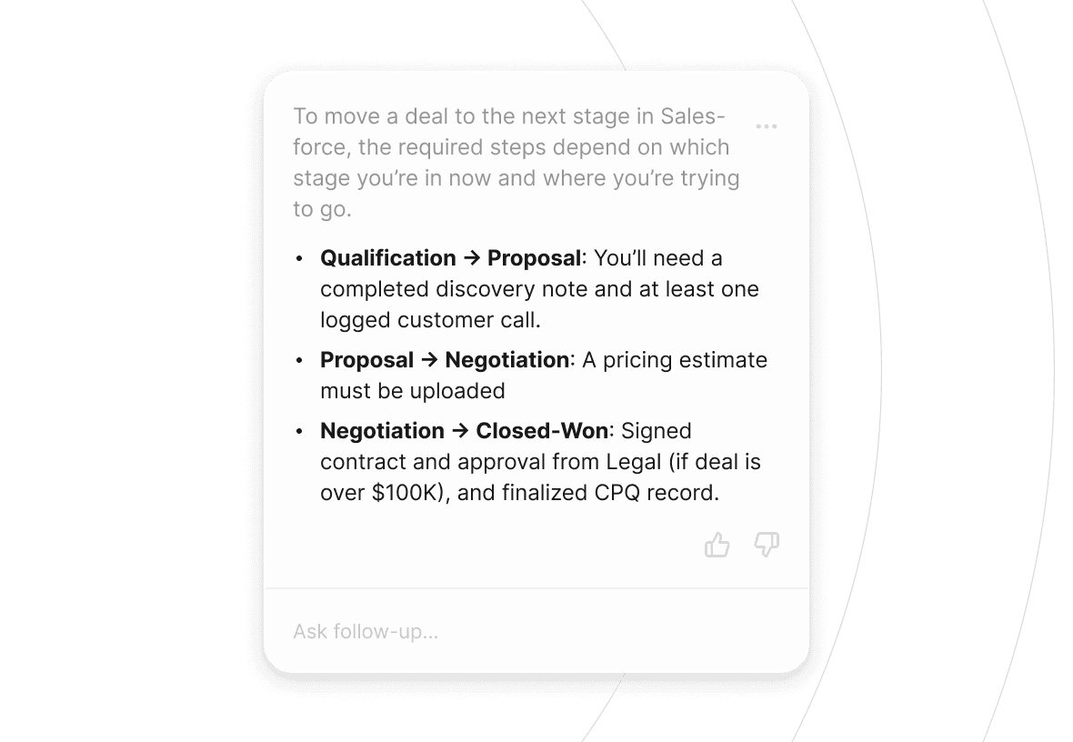 Support every stage of the employee journey with instant access to policies, onboarding guidance, and internal process knowledge.